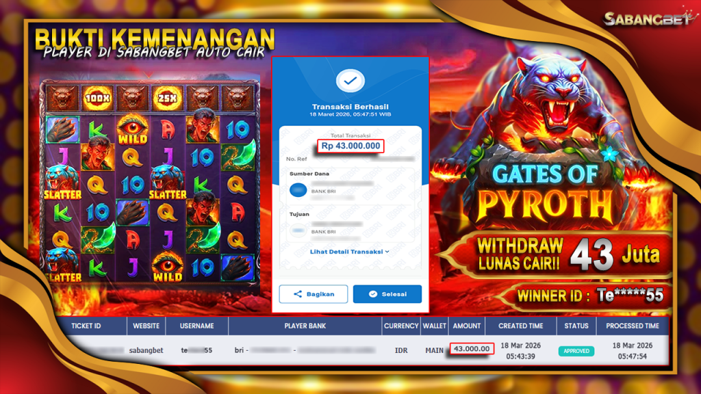BUKTI KEMENANGAN 18 MARET 2026 DI GAME Gates Of Pyroth WD 43 JUTA