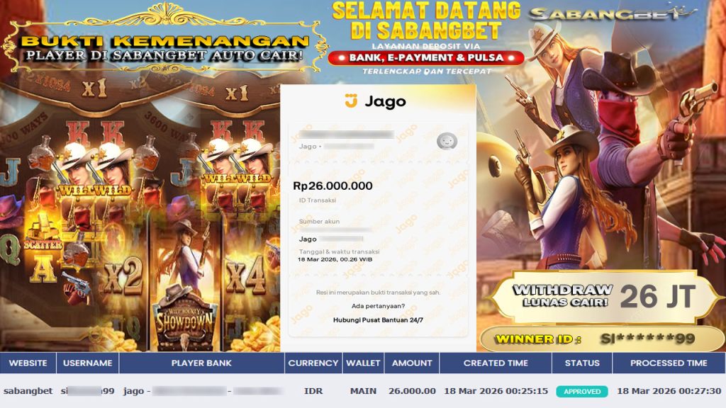 BUKTI KEMENANGAN 18 MARET 2026 DI GAME WILD BOUNTY SHOWDOWN WD 26 JUTA