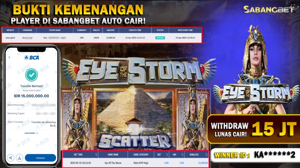 BUKTI KEMENANGAN 19 APRIL 2025 DI GAME EYE OF THE STORM WD 15 JUTA