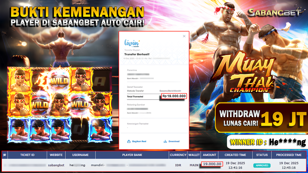 BUKTI KEMENANGAN 19 DESEMBER 2025 DI GAME MUAYTHAI CHAMPION WD 19 JUTA
