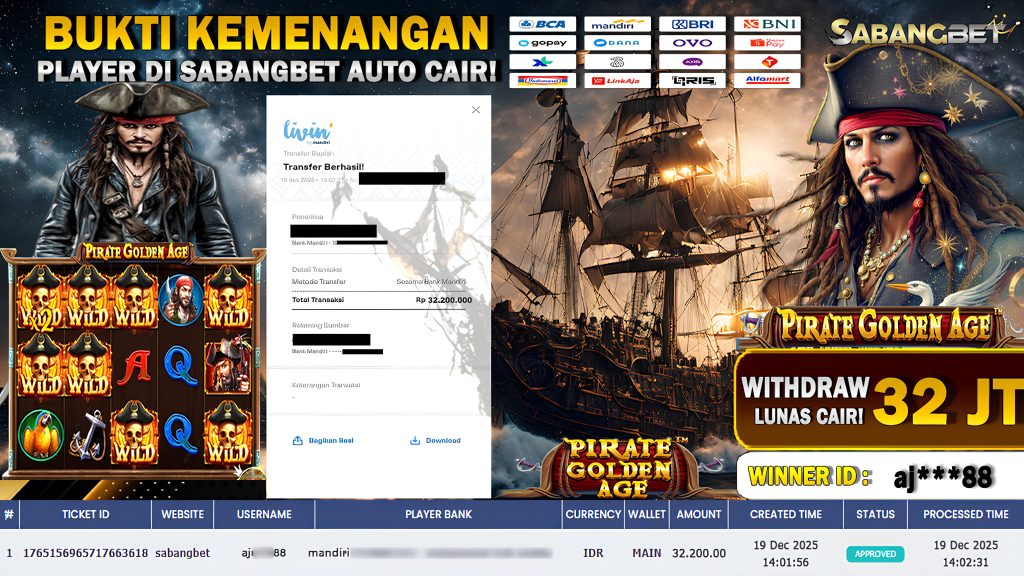 BUKTI KEMENANGAN 19 DESEMBER 2025 DI GAME PIRATE GOLDEN AGE WD 32 JUTA