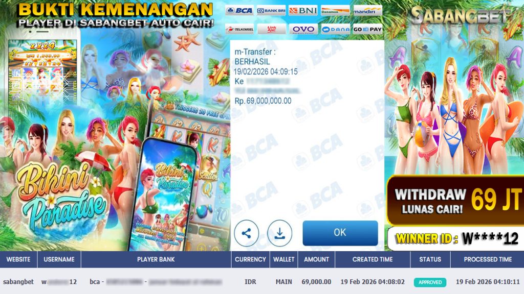 BUKTI KEMENANGAN 19 FEBRUARI 2026 DI GAME BIKINI PARADISE WD 69 JUTA