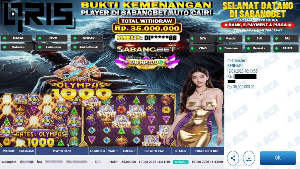 BUKTI KEMENANGAN 19 JANUARI 2026 DI GATES OF OLYMPUS 1000 WD 35 JUTA