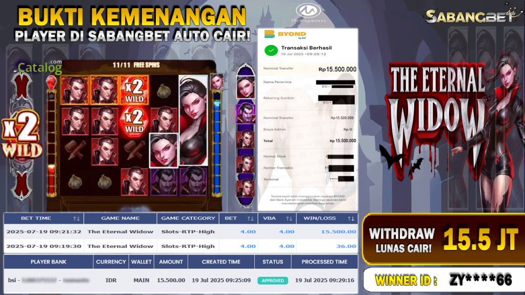 BUKTI KEMENANGAN 19 JULI 2025 DI The Eternal Widow WD 15.5 JUTA
