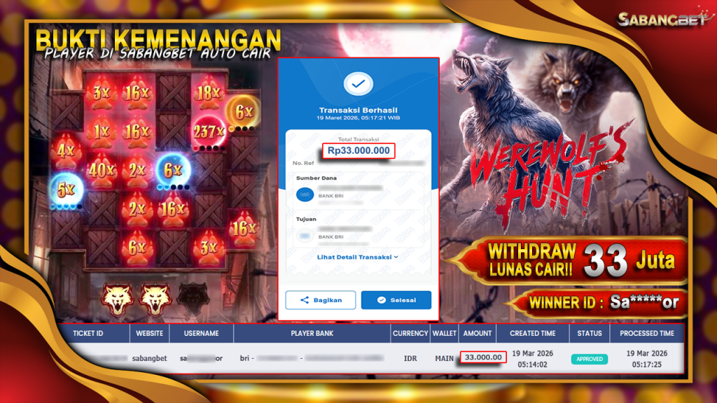 BUKTI KEMENANGAN 19 MARET 2026 DI GAME Werewolf’s Hunt WD 33 JUTA