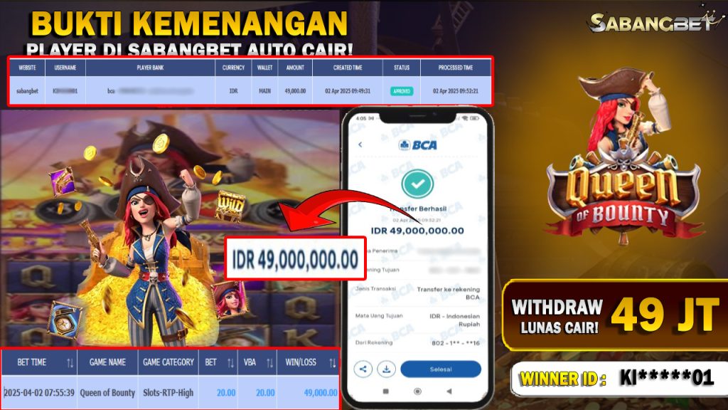 BUKTI KEMENANGAN 2 APRIL 2025 DI GAME QUEEN OF BOUNTY WD 49 JUTA