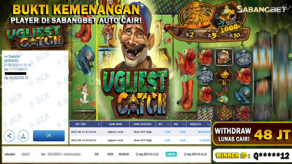BUKTI KEMENANGAN 20 AGUSTUS 2025 DI GAME UGLIEST CATCH WD 48 JUTA