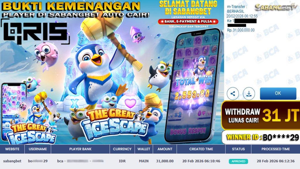 BUKTI KEMENANGAN 20 FEBRUARI 2026 DI GAME THE GREAT ICESPACE WD 31 JUTA