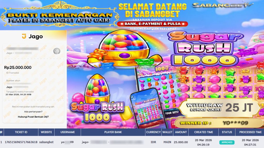 BUKTI KEMENANGAN 20 MARET 2026 DI GAME SUGAR RUSH 1000 WD 25 JUTA