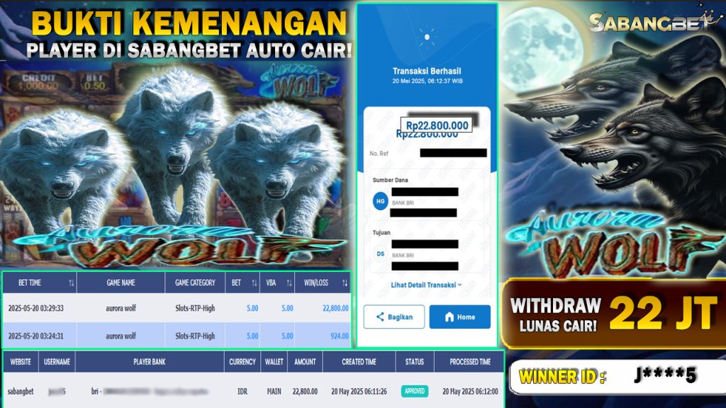 BUKTI KEMENANGAN 20 MEI 2025 DI GAME AURORA WOLF WD 22 JUTA