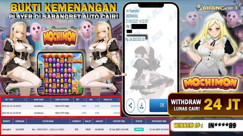 BUKTI KEMENANGAN 21 JUNI 2025 DI GAME MOCHIMON WD 24 JUTA