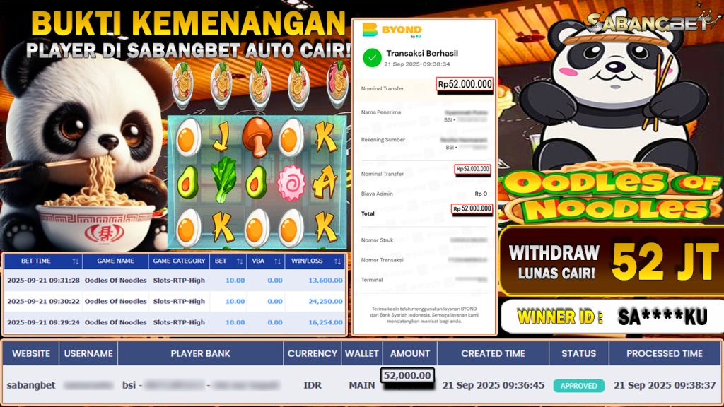 BUKTI KEMENANGAN 21 SEPTEMBER 2025 DI GAME OODLES OF NOODLES WD 52 JUTA