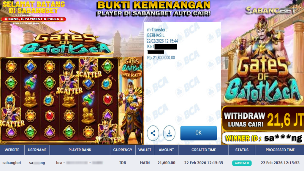 BUKTI KEMENANGAN 22 FEBRUARI 2026 DI GAME GATES OF GATOT KACA WD 21,6 JUTA