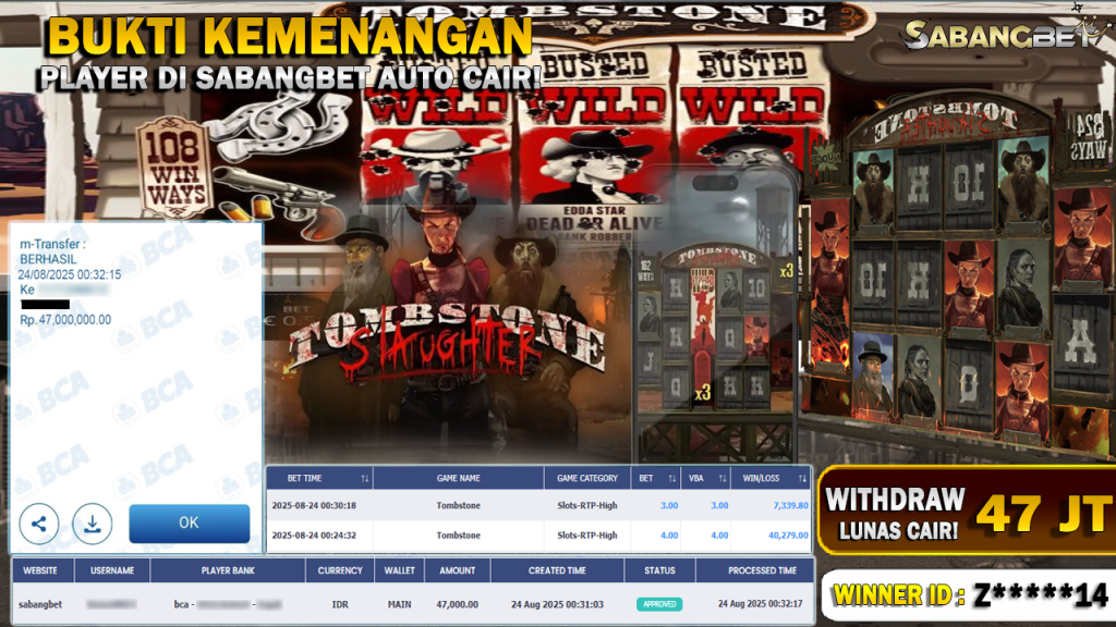 BUKTI KEMENANGAN 24 AGUSTUS 2025 DI GAME TOMBSTONE WD 47 JUTA