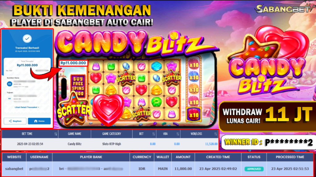 BUKTI KEMENANGAN 23 APRIL 2025 DI GAME CANDY BLITZ WD 11 JUTA