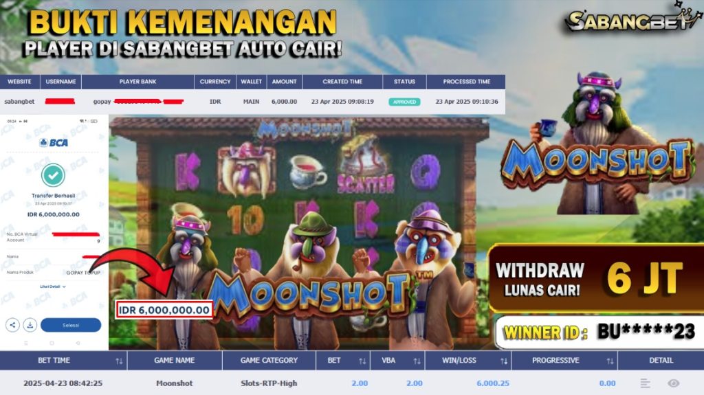BUKTI KEMENANGAN 23 APRIL 2025 DI GAME MOONSHOT WD 6 JUTA