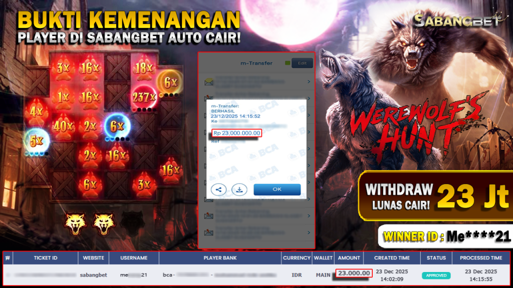 BUKTI KEMENANGAN 23 DESEMBER 2025 DI GAME Werewolf’s Hunt WD 23 JUTA