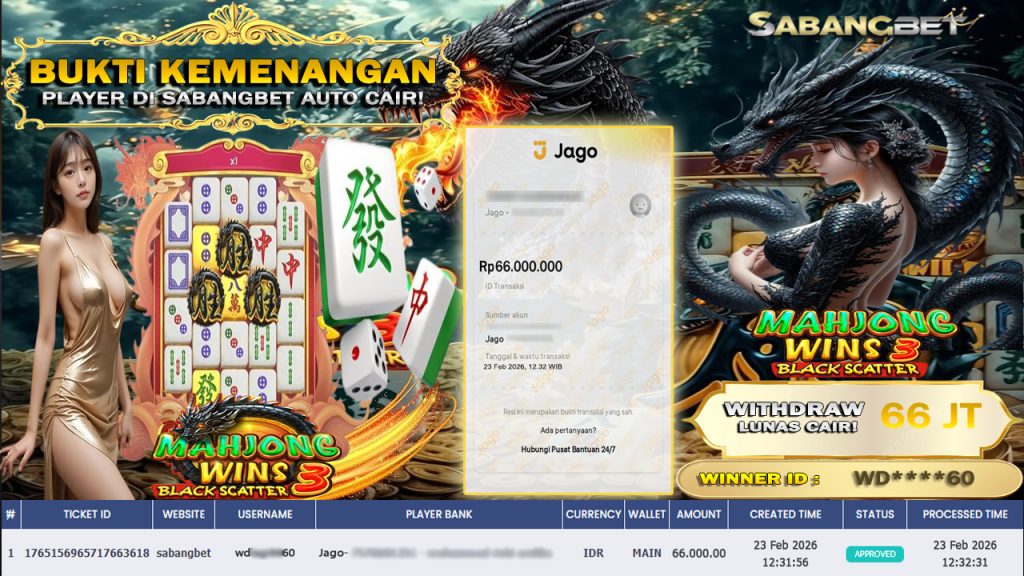 BUKTI KEMENANGAN 23 FEBRUARI 2026 DI GAME Mahjong Wins 3 – Black Scatter WD 66 JUTA
