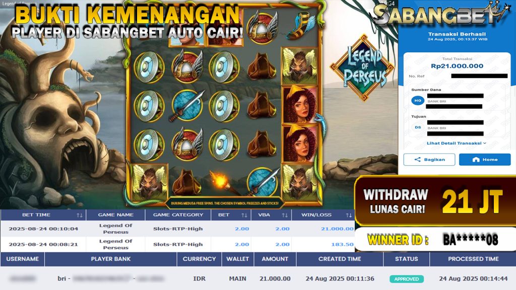BUKTI KEMENANGAN 24 AGUSTUS 2025 DI GAME Legend Of Perseus WD 21 JUTA