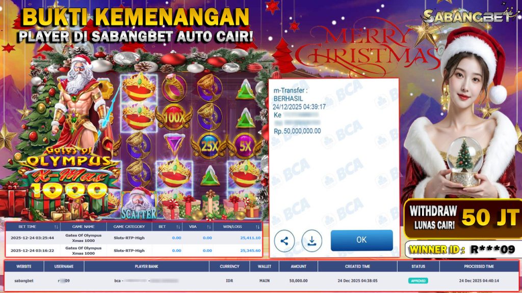BUKTI KEMENANGAN 24 DESEMBER 2025 DI GAME GATES OF OLYMPUS XMAS 1000 WD 50 JUTA