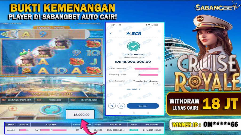 BUKTI KEMENANGAN 24 MARET 2025 DI GAME CRUISE ROYALE PG SOFT WD 18 JT