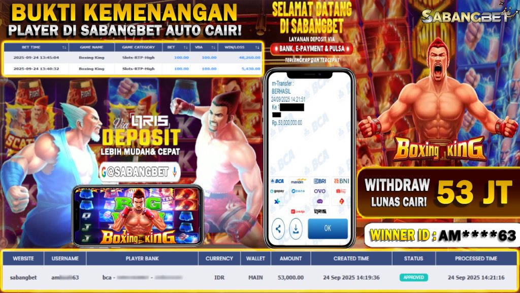 BUKTI KEMENANGAN 24 SEPTEMBER 2025 DI GAME BOXING KING WD 53 JUTA