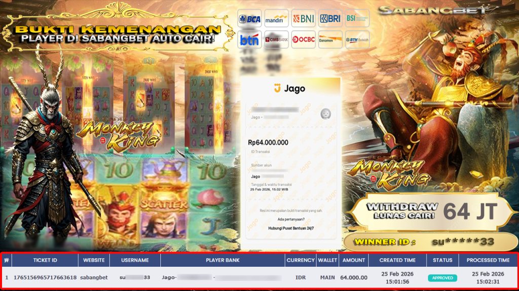 BUKTI KEMENANGAN 25 FEBRUARI 2026 DI GAME Legendary Monkey King WD 64 JUTA