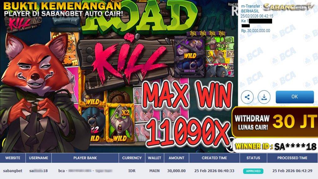 BUKTI KEMENANGAN 25 FEBRUARI 2026 DI GAME ROAD KILL WD 3 JUTA