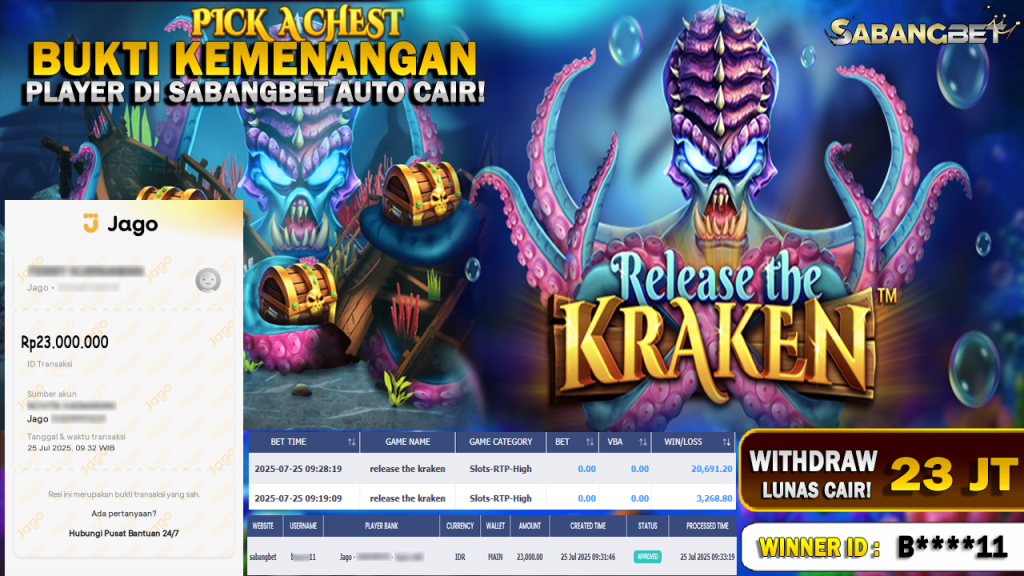 BUKTI KEMENANGAN 25 JULI 2025 DI GAME RELEASE THE KRAKEN WD 23 JUTA