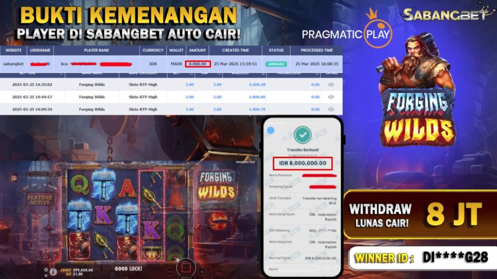 BUKTI KEMENANGAN 25 MARET 2025 DI GAME FORGING WILDS WD 8 JUTA