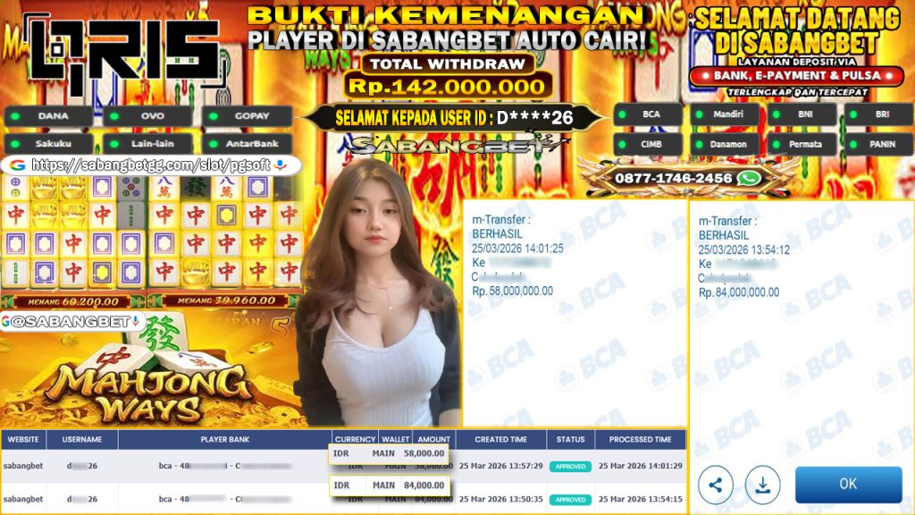 BUKTI KEMENANGAN 25 MARET 2026 DI GAME MAHJONG WAYS WD 142 JUTA