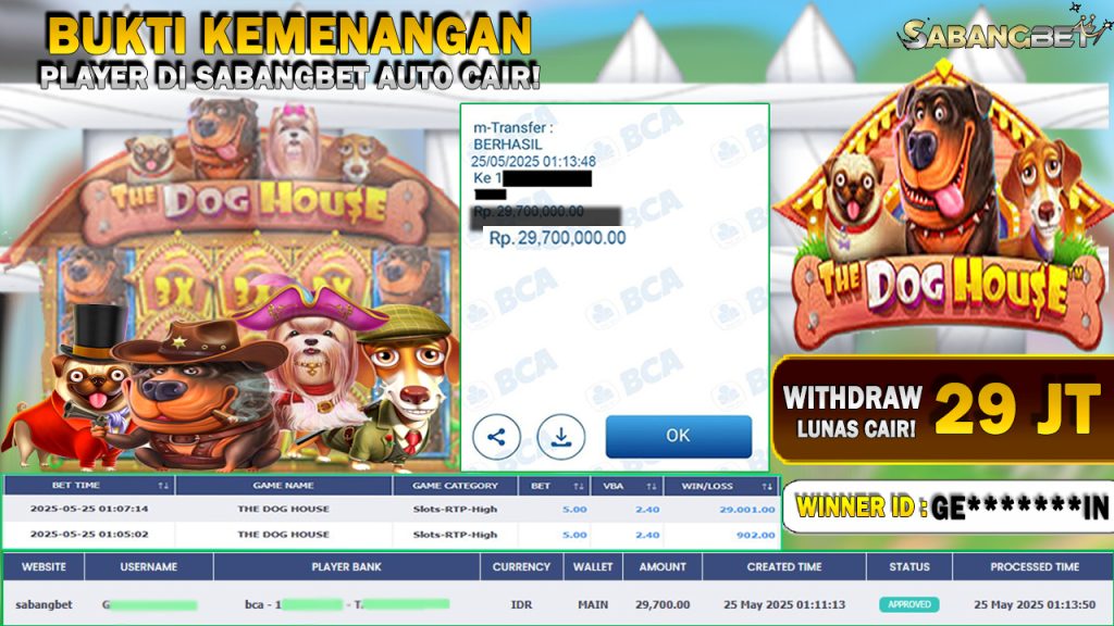 BUKTI KEMENANGAN 25 MEI 2025 DI GAME THE DOG HOUSE WD 29.7 JUTA