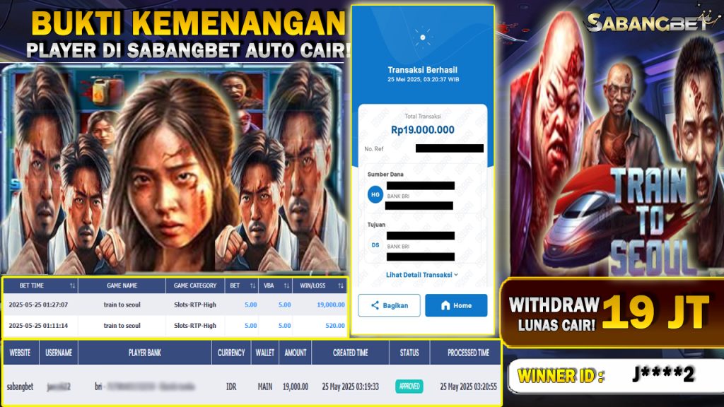 BUKTI KEMENANGAN 25 MEI 2025 DI GAME TRAIN TO SEOUL WD 19 JUTA