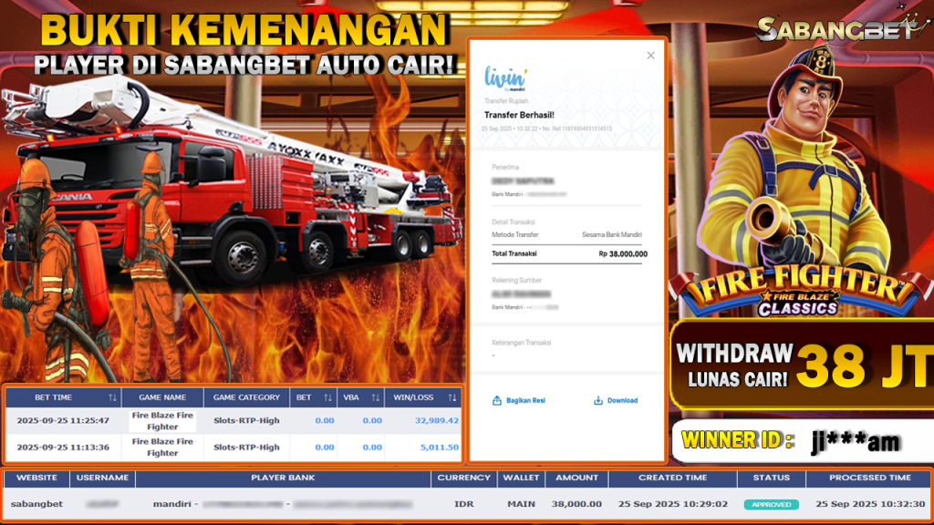 BUKTI KEMENANGAN 26 SEPTEMBER 2025 DI GAME FIRE BLAZE FIRE FIGHTER WD 38 JUTA