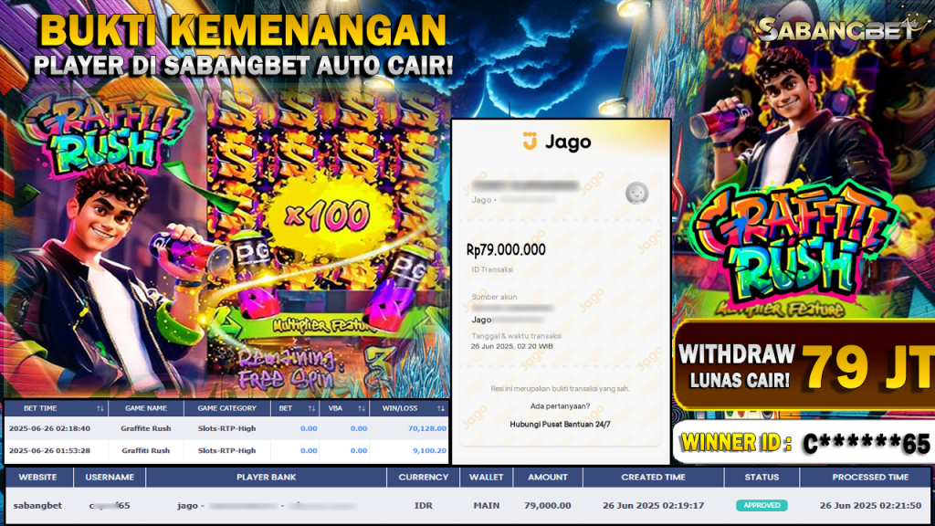 BUKTI KEMENANGAN 26 JUNI 2025 DI GAME GRAFFITI RUSH WD 79 JUTA