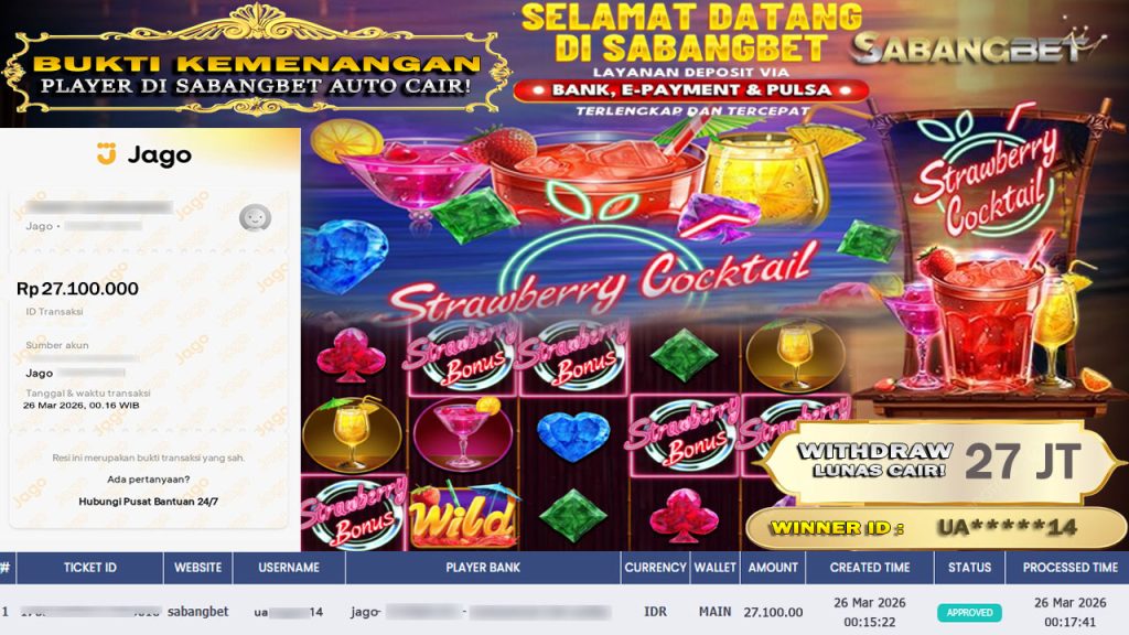 BUKTI KEMENANGAN 26 MARET 2026 DI GAME STRAWBERRY COCKTAIL WD 27 JUTA