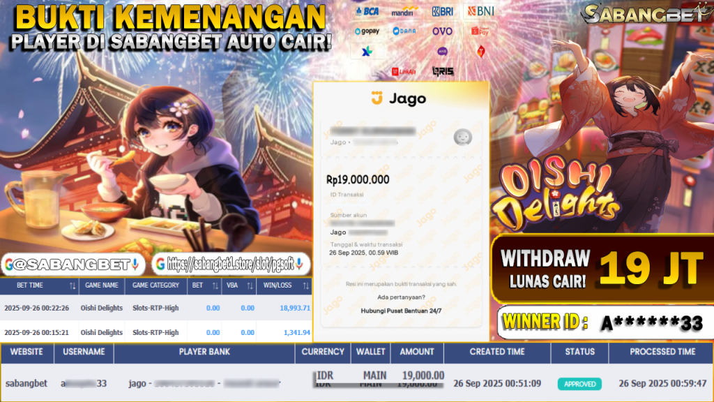 BUKTI KEMENANGAN 26 SEPTEMBER 2025 DI GAME OISHI DELIGHTS WD 19 JUTA