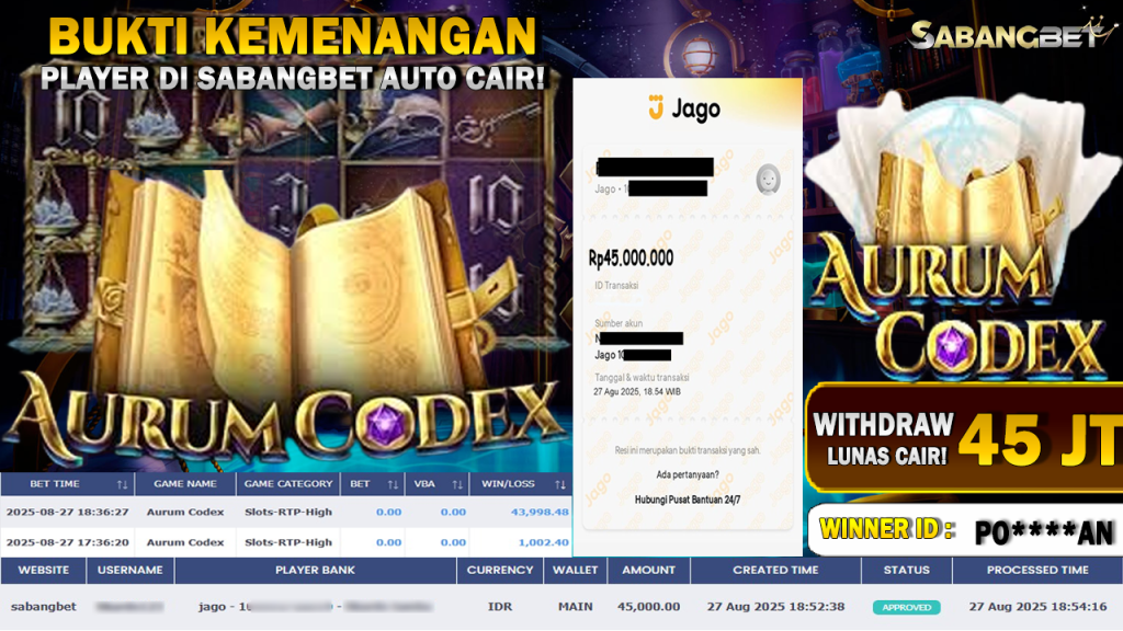 BUKTI KEMENANGAN 27 AGUSTUS 2025 DI GAME AURUM CODEX WD 45 JUTA