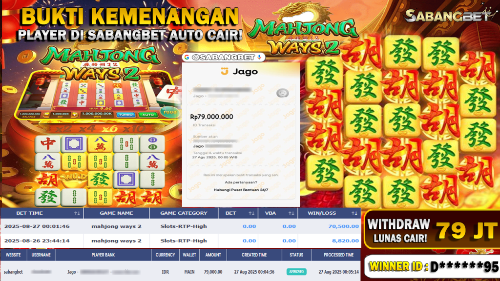 BUKTI KEMENANGAN 27 AGUSTUS 2025 DI GAME MAHJONG WAYS 2 ( POCKET GAME SOFT ) WD 79 JUTA