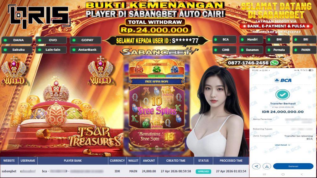 BUKTI KEMENANGAN 27 APRIL 2026 DI GAME TSAR TREASURES WD 24 JUTA