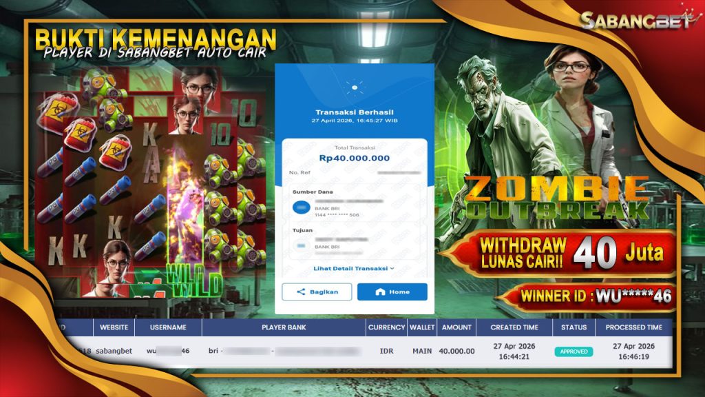 BUKTI KEMENANGAN 27 APRIL 2026 DI GAME ZOMBIE OUTBREAK WD 40 JUTA
