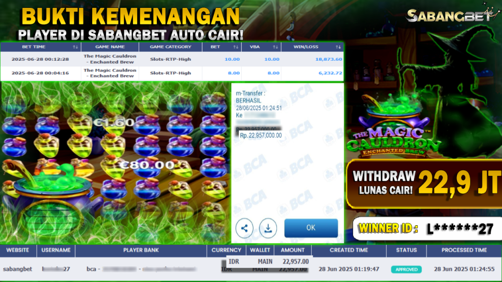 BUKTI KEMENANGAN 28 JUNI 2025 DI GAME THE MAGIC CAULDRON – ENCHANTED BREW WD 22,9 JUTA