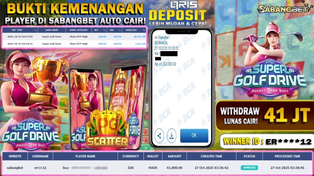 BUKTI KEMENANGAN 27 OKTOBER 2025 DI GAME SUPER GOLF DRIVE WD 41 JUTA