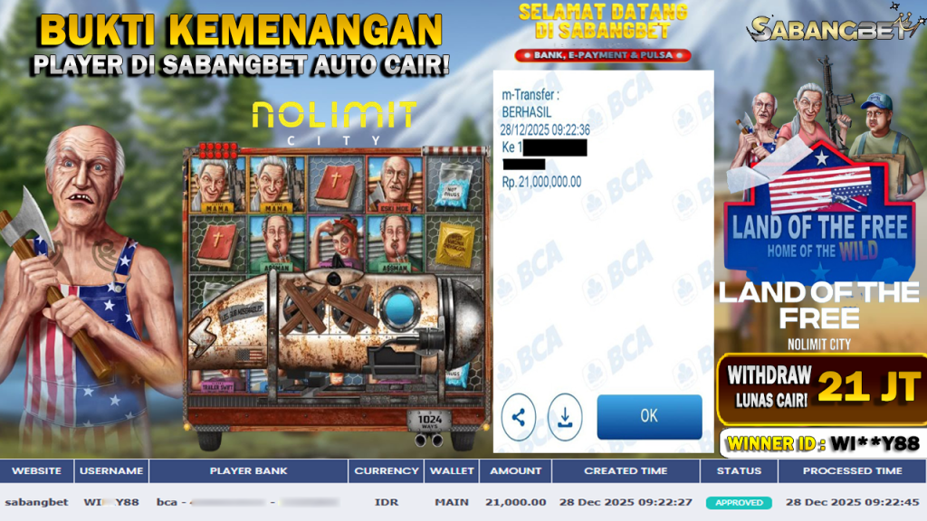 BUKTI KEMENANGAN 28 DESEMBER 2025 DI GAME LAND OF THE FREE WD 21 JUTA