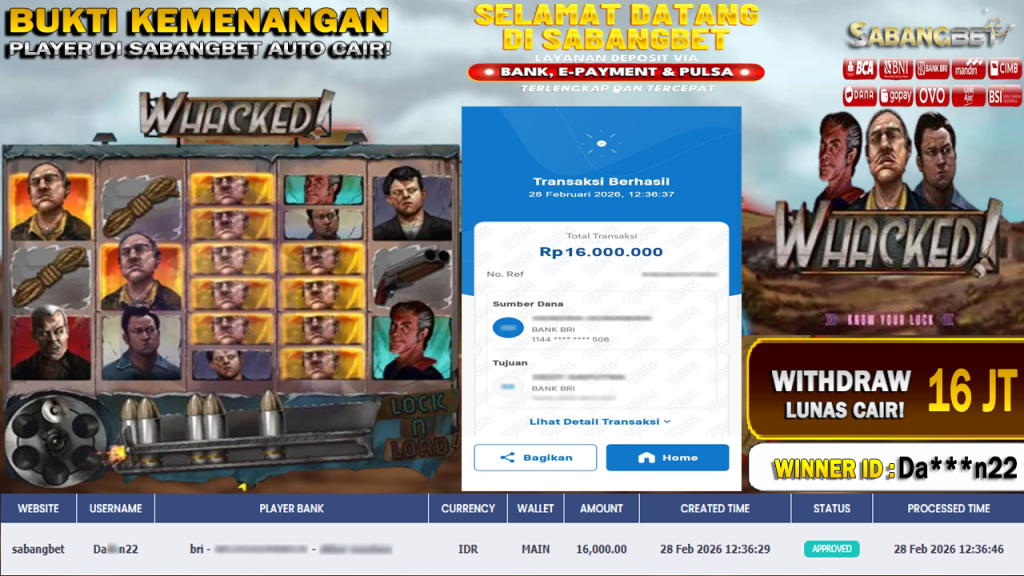 BUKTI KEMENANGAN 28 FEBRUARI 2026 DI GAME WHACKED WD 16 JUTA
