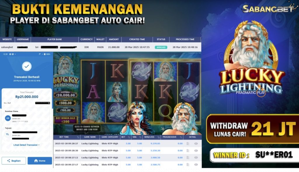 BUKTI KEMENANGAN 28 MARET 2025 DI GAME LUCKY LIGHTNING WD 21 JT