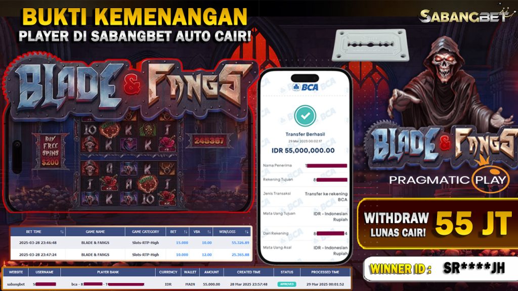 BUKTI KEMENANGAN 29 MARET 2025 DI GAME BLADE & FANGS WD 55 JT