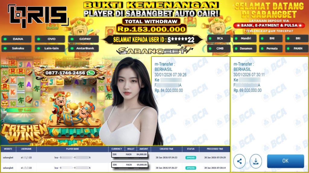 BUKTI KEMENANGAN 30 JANUARI 2026 DI GAME CAI SHEN WINS WD 153 JUTA