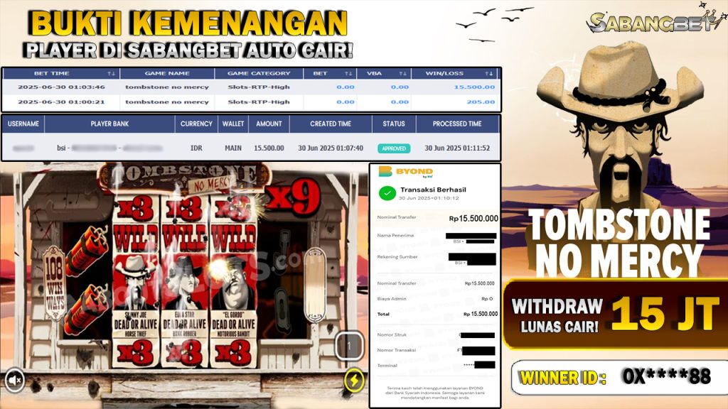 BUKTI KEMENANGAN 30 JUNI 2025 DI GAME tombstone no mercy WD 15 JUTA