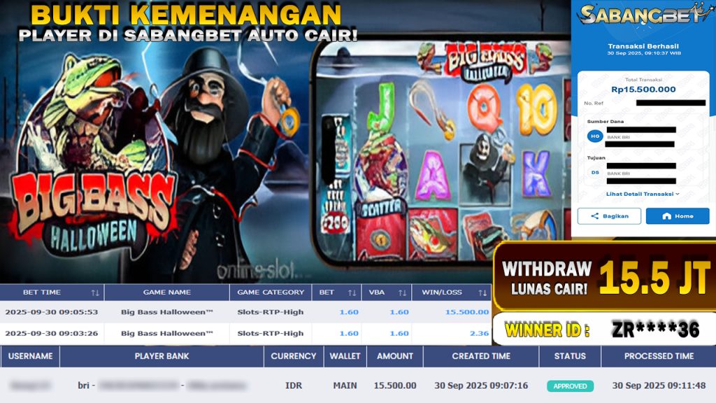 BUKTI KEMENANGAN 30 SEPTEMBER 2025 DI GAME Big Bass Halloween™ WD 15.5 JUTA